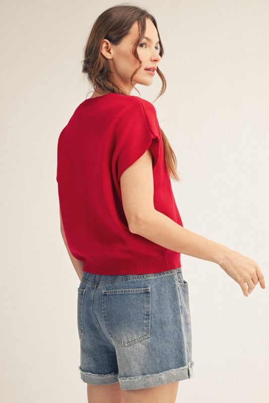 Drop Shoulder Red Sweater Top with knot detail