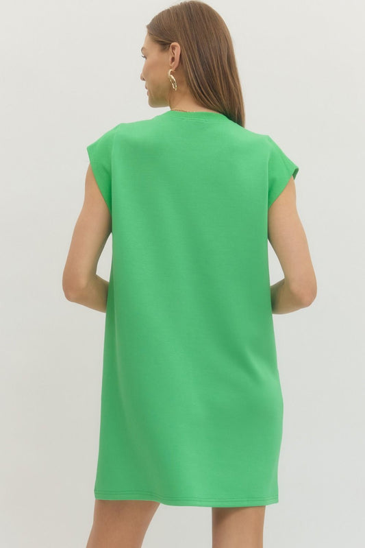 Solid Green Cap Sleeve Ribbed Crew Mini Dress