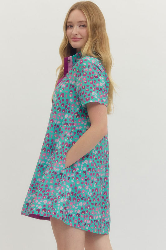 Jade Leopard Print Short Sleeve Mini Dress