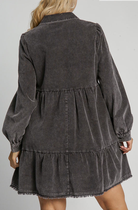 Mineral Wash Collared Dress - Ash