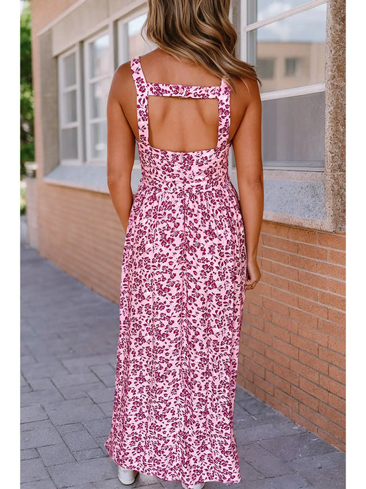 Floral Cutout Back Empire Waist Maxi Dress