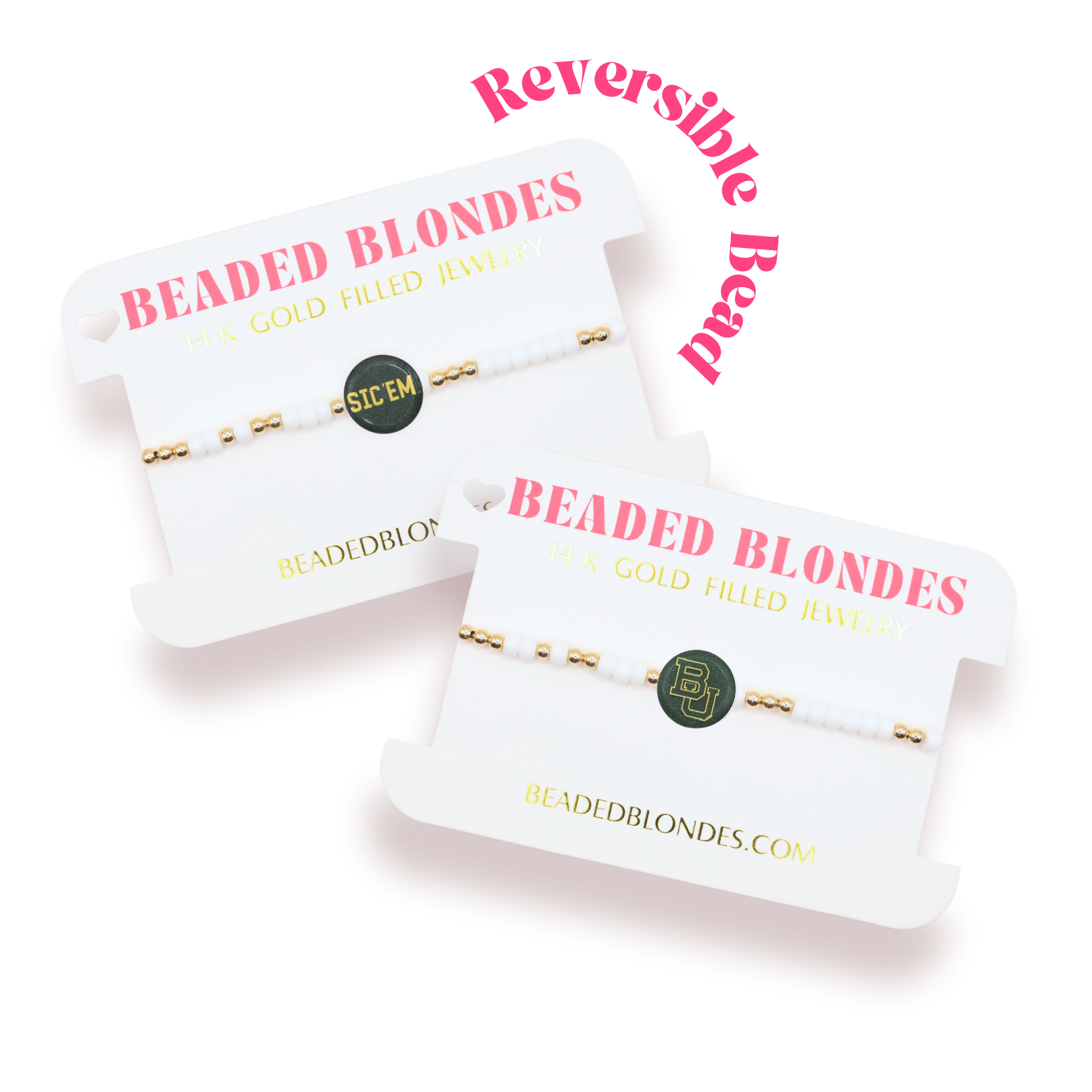 Get ready to support your favorite team in style with the Baylor Bead Bracelet! Perfect for game day, this bracelet features unique Baylor-themed beads that will be sure to catch everyone's eye. Show off your team spirit and accessorize like a true fan!