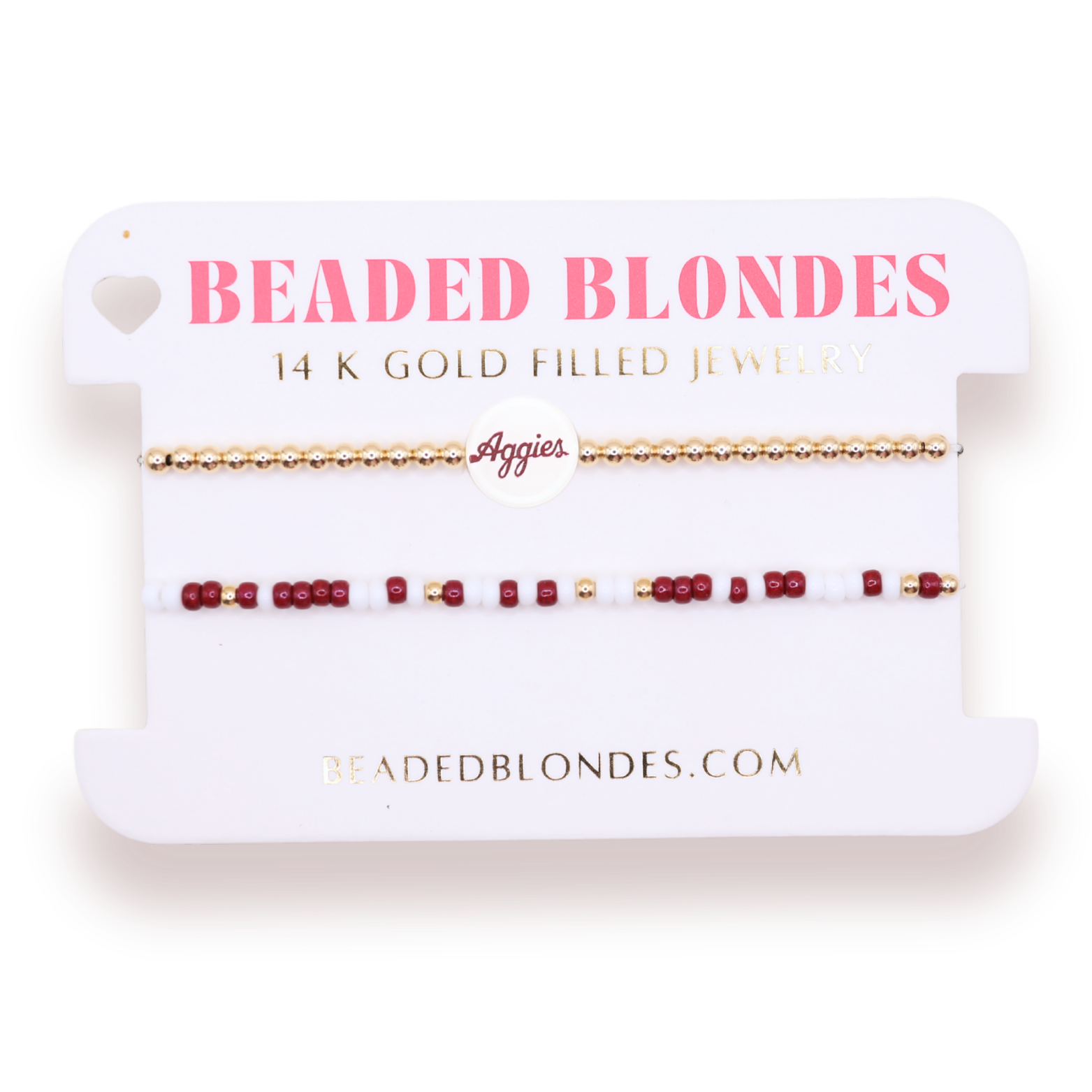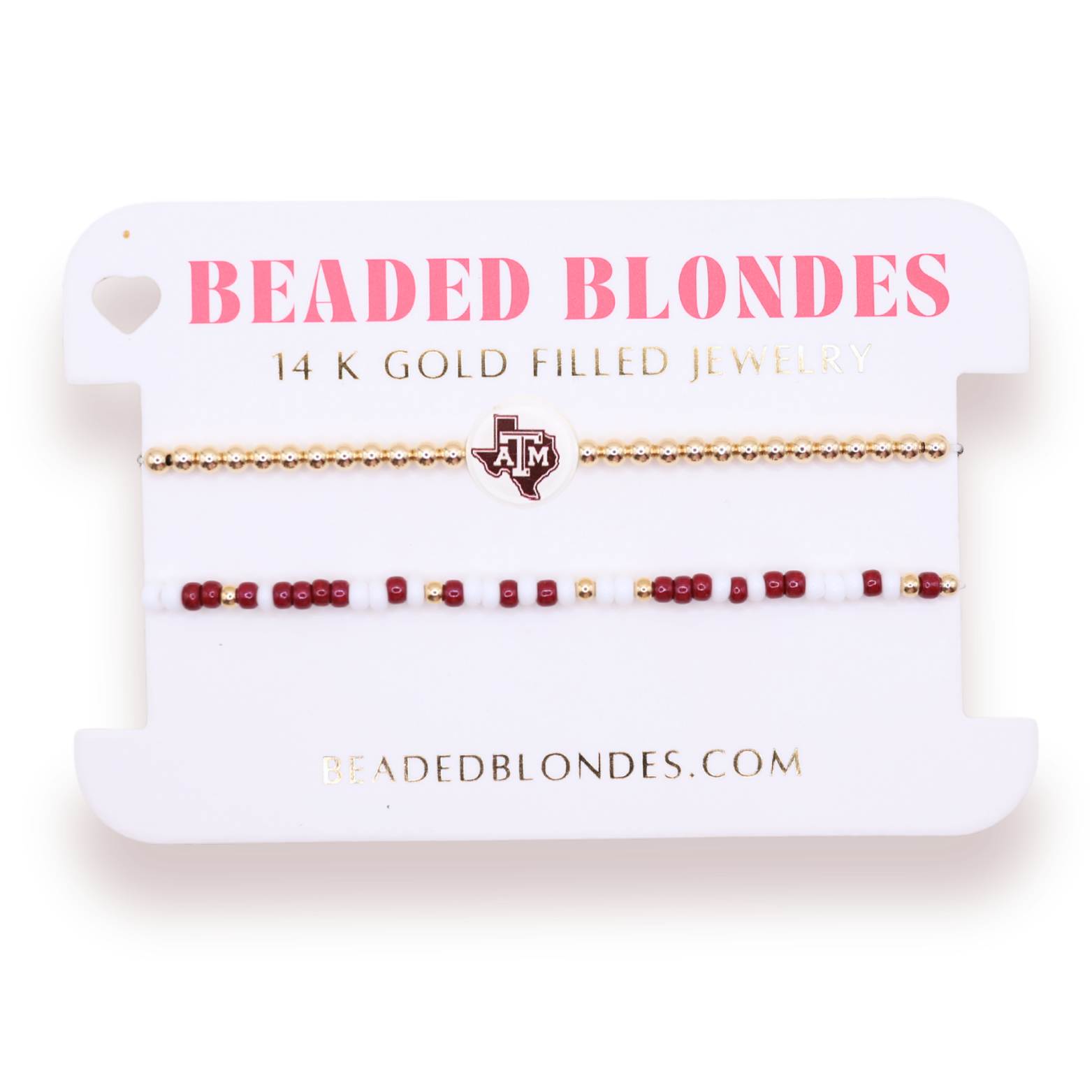 Get ready to support your favorite team in style with our 2 sided CLC Licensed Game day + sprinkle bracelet stack! Perfect for game day, this bracelet features unique A&M-themed beads.